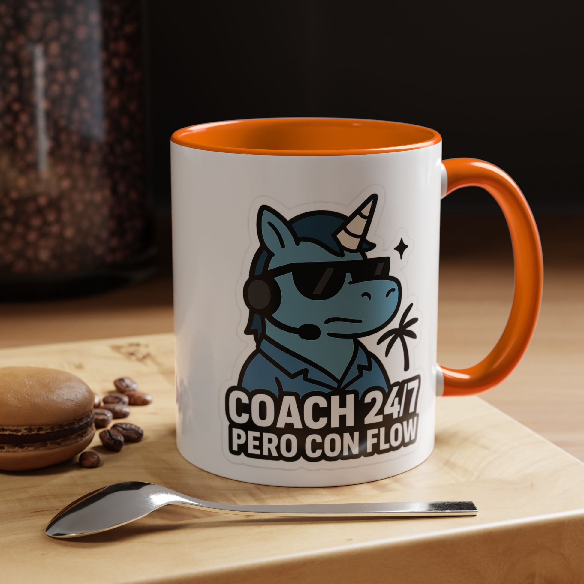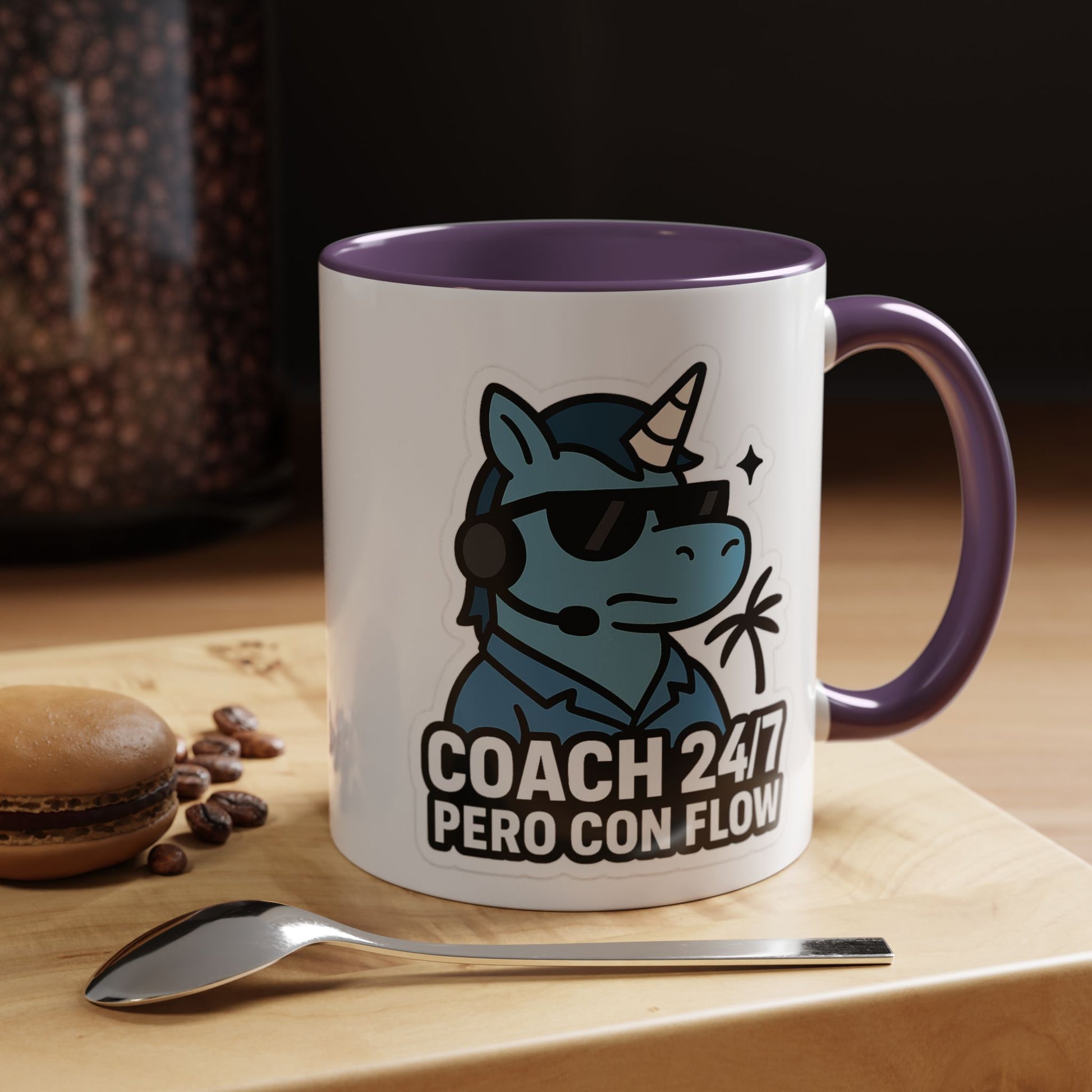 Esta taza de 11oz no solo te sostiene el combustible para sobrevivir el día: también envía el mensaje oficial del Caribe productivo y con actitud: “COACH 24/7, PERO CON FLOW”. Diseño WildonLibre en estilo sticker flat: solo cabeza con lentes negros + ícono de rayo amarillo para que se entienda que aquí hay energía… pero sin drama.